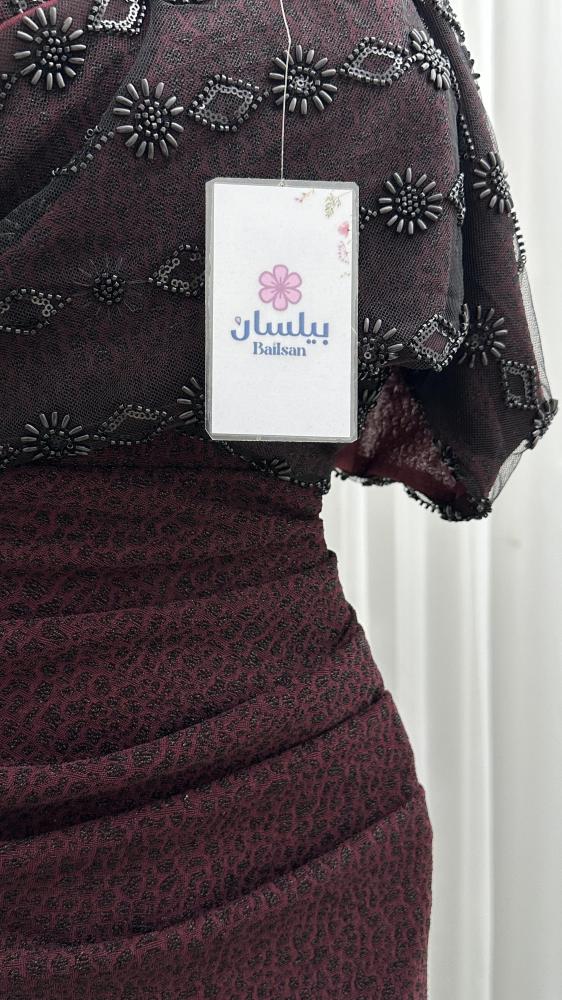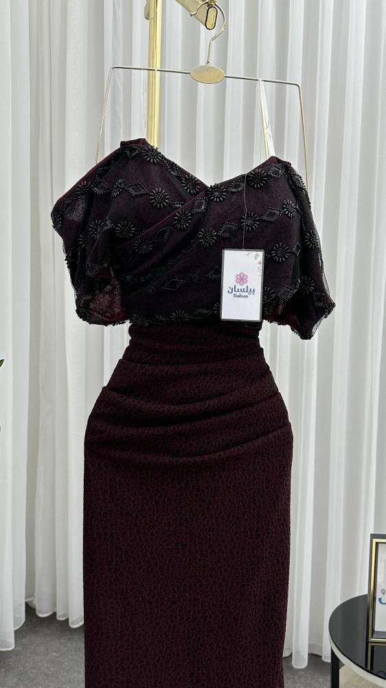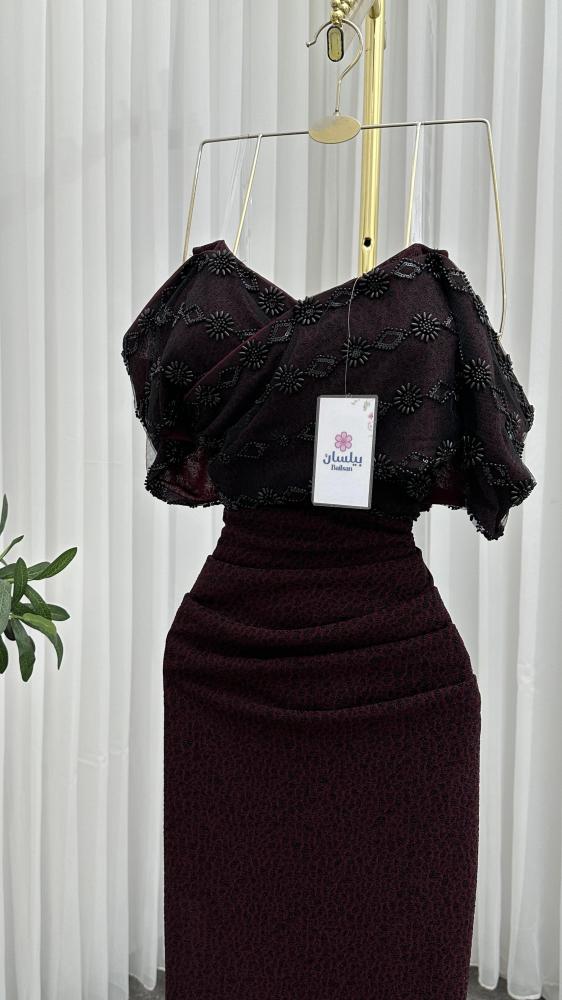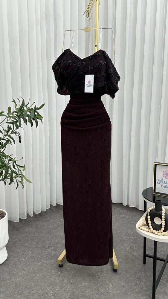 فستان طويل استرتش عنابي