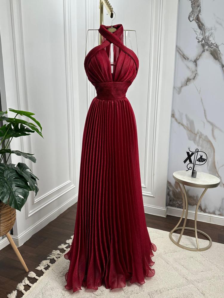 فستان طويل عنابي